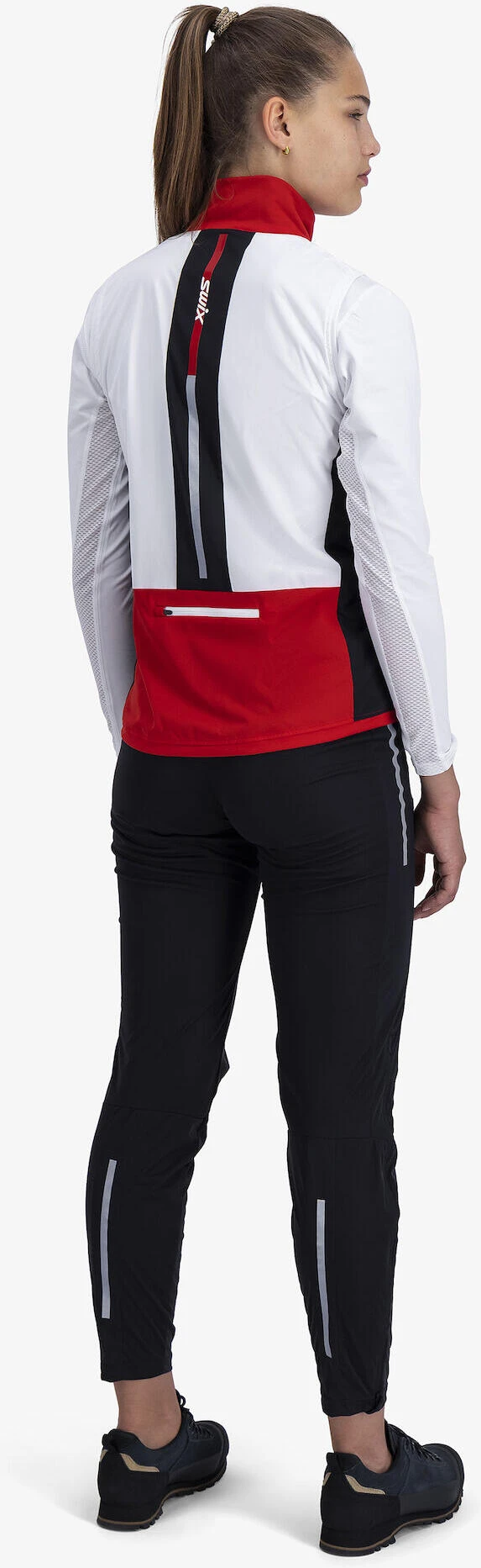 Die Quantum Performance Weste W ist ein Allround-Trainingsfavorit, der auch als Midlayer für den Skilanglauf, aber auch für den Laufsport verwendet werden kann, da sie über viele reflektierende Details verfügt. Es gibt keine Seitennähte, was den Tragekomfort erhöht. Die Weste ist aus einem sehr elastischen und atmungsaktiven Stoff gefertigt, Sie werden überrascht sein, dass es keine Membran gibt! Sie erfüllt dennoch ihren Zweck und ist nicht gefüttert, mit Ausnahme eines dünnen, bequemen gebürsteten Stoffes im Kragen. Sie hat zwei leicht zugängliche Taschen, eine auf der Brust und die andere am unteren Rücken.