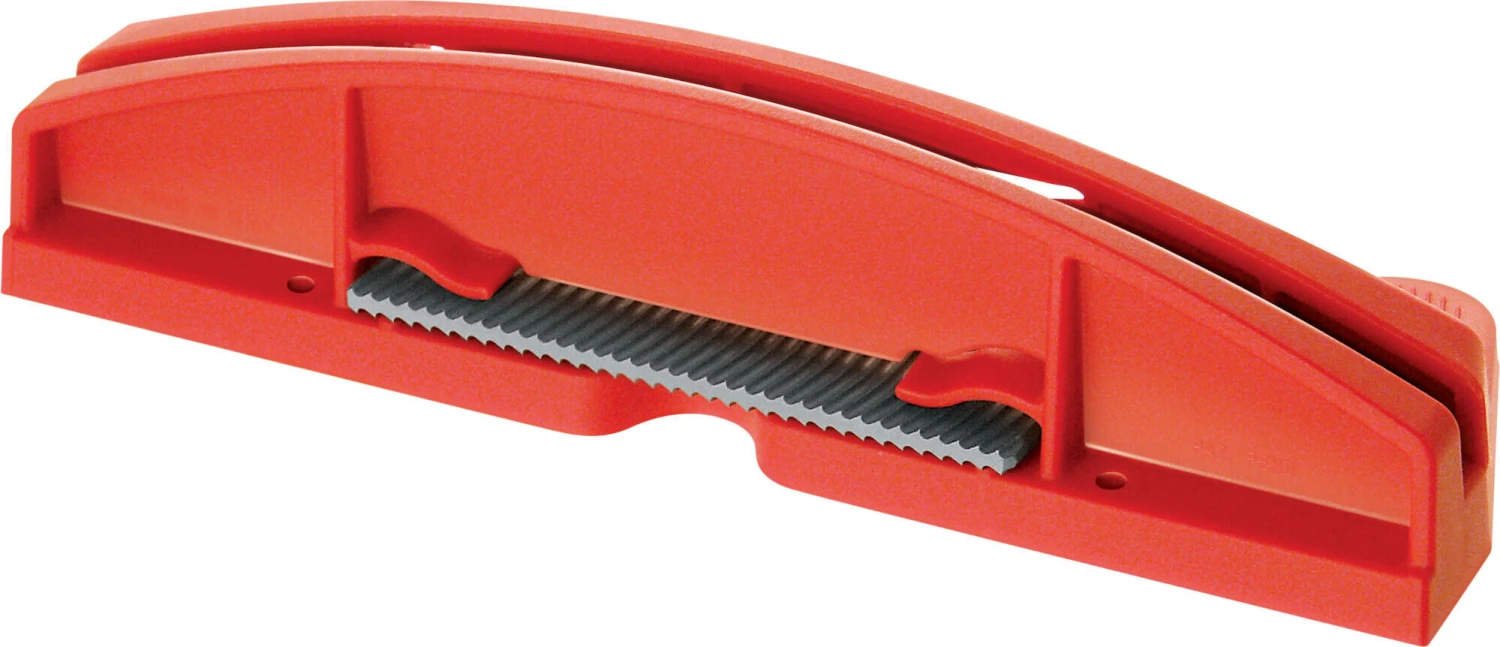 Weltcup-Schleifwerkzeug für Plexischaber mit 100 mm Qualitätsfeile. Beim Wachsen von Skiern ist es wichtig, einen scharfen Schaber zu haben. Das Wachs kann dann mit weniger Kraft gegen den Belag abgeschabt werden, was wichtig ist, um die Struktur des Skibelags nicht zu beschädigen und den Arbeitsablauf in der Wachskabine zu verbessern. Einfach zu benutzen, mit zwei Seitenwänden, die stabilisieren und eine gute Präzision gewährleisten. Für alle Plexiglasabstreifer bis einschließlich 5 mm Dicke. Mit Schraublöchern zum einfachen Anschrauben an die Werkbank oder die Wand.